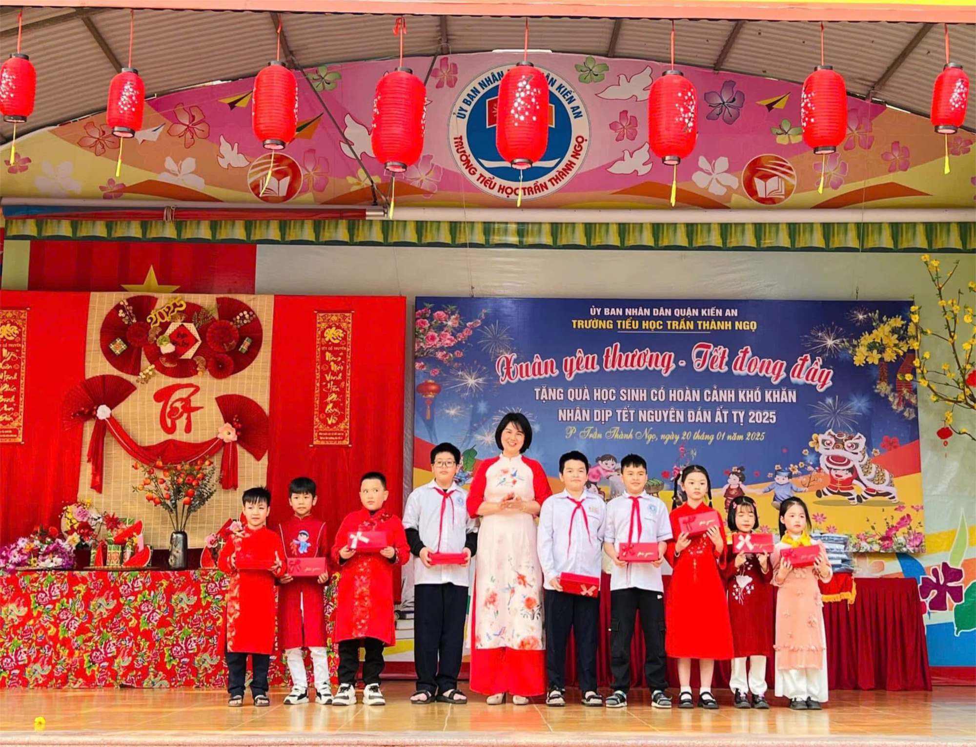 Trong không khí hối hả những ngày cuối năm Giáp Thìn cùng với việc hoàn thành kế hoạch giáo dục học kỳ I, triển khai kế hoạch giáo dục học kỳ II cũng là lúc mọi người hân hoan, háo hức đón chào một mùa xuân mới - Xuân Ất Tỵ 2025. Với mong muốn nhà nhà, người người đón xuân ấm áp, đủ đầy, chiều ngày 20/ 1/ 2025, Trường Tiểu học Trần Thành Ngọ long trọng tổ chức chương trình “XUÂN YÊU THƯƠNG, TẾT ĐONG ĐẦY” - Chương trình Tết vì học sinh có hoàn cảnh khó khăn biết vươn lên trong học tập.