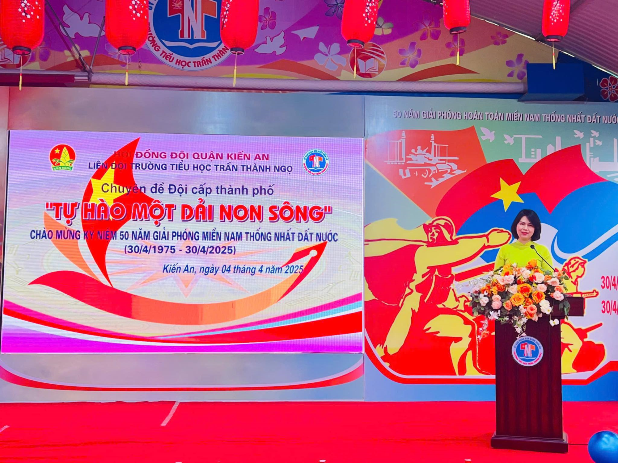 Hướng đến chào mừng 50 năm Ngày Giải phóng miền Nam, thống nhất đất nước (30/4/1975 – 30/4/2025) và 70 năm Ngày Giải phóng Hải Phòng (13/5/1955 – 13/5/2025), thực hiện Kế hoạch công tác Đội và phong trào thiếu nhi năm học 2024 – 2025 của Quận Đoàn – Phòng Giáo dục & Đào tạo quận Kiến An, Liên đội Trường Tiểu học Trần Thành Ngọ long trọng tổ chức chuyên đề cấp thành phố với chủ đề: “TỰ HÀO MỘT DẢI NON SÔNG”. Chuyên đề không chỉ là một sân chơi rèn luyện kỹ năng, mà còn là hành trình ngược dòng thời gian để tìm về với cội nguồn dân tộc, để các em học sinh thêm yêu, thêm tự hào và trân trọng giá trị của độc lập – tự do mà bao thế hệ cha anh đã đánh đổi bằng mồ hôi, máu và nước mắt.