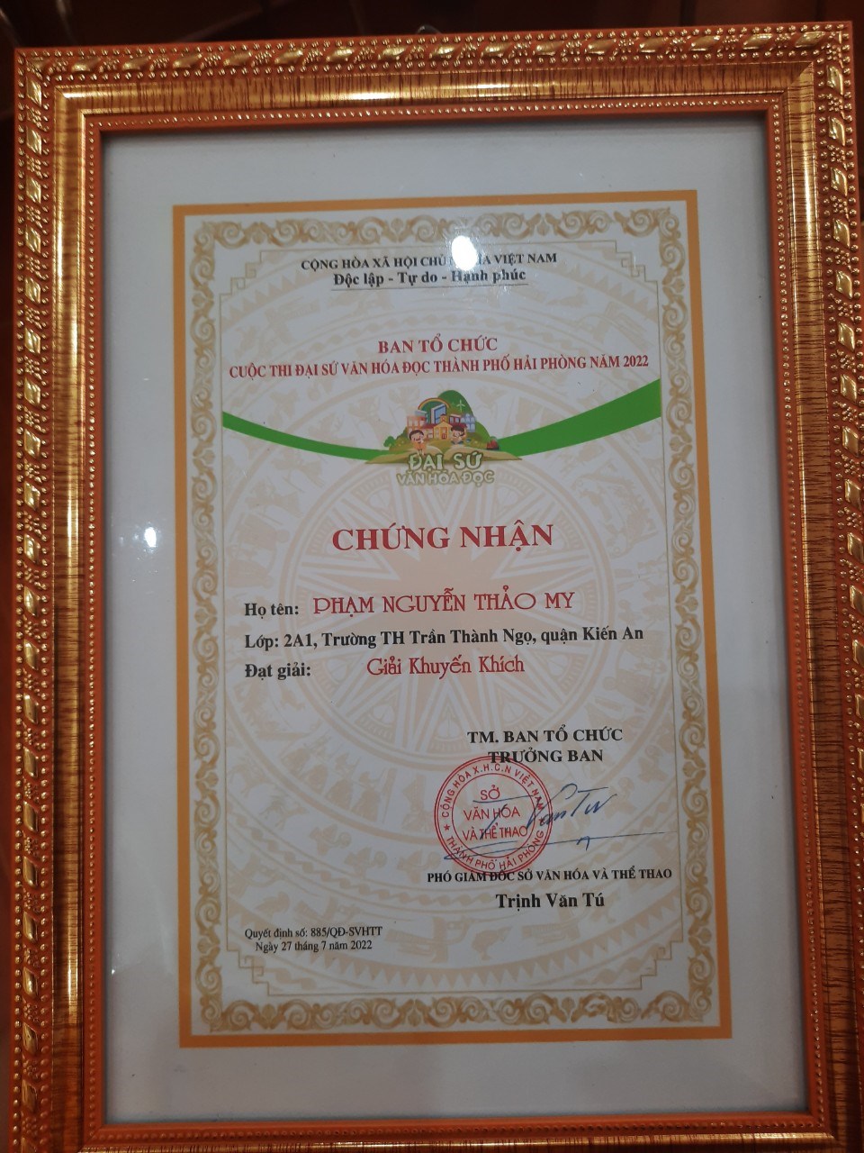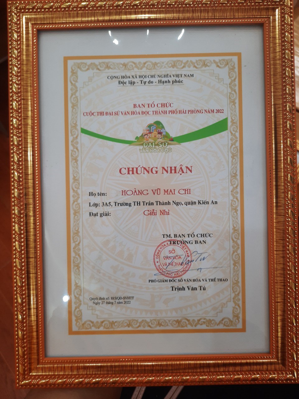 📚 Kết quả: Vượt qua hơn 30 125 bài viết đến từ các quận huyện trên toàn thành phố, Em Hoàng Vũ Mai Chi - Lớp 3A5 và em Phạm Nguyễn Thảo My- 2A1 trường Tiểu học Trần Thành Ngọ- quận Kiến An đã đạt giải nhì và giải khuyến khích cấp thành phố "Cuộc thi đại sứ văn hóa đọc thành phố Hải Phòng năm 2022”.