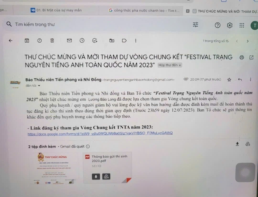 Chúc mừng em! Chúc em sẽ tiếp tục ôn luyện và đạt kết quả cao nhất trong Vòng Chung kết trong thời gian tới!