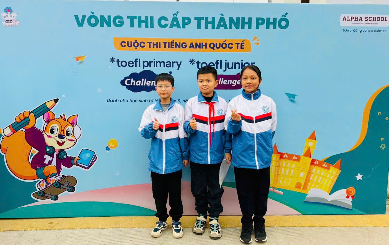 Nhằm tạo cơ hội cho học sinh được cọ xát, đánh giá năng lực tiếng Anh theo chuẩn quốc tế, nhà trường đã tạo điều kiện để học sinh tham gia Cuộc thi TOEFL Primary Challenge. Năm học này, 03 học sinh lớp 5A3 của nhà trường tham gia và được Ban Tổ chức lựa chọn dự Vòng thi cấp Thành phố.