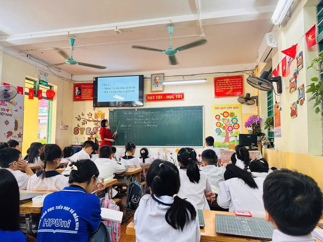 Để làm rõ mục tiêu của chuyên đề, cô giáo Nguyễn Thị Hồng Minh thực hiện tiết dạy minh họa với bài “Phép trừ (có nhớ) số có hai chữ số cho số có hai chữ số” (tiết 1) cùng học sinh lớp 2A3. Đây là bài học phù hợp để thể hiện cách giáo viên tổ chức các hoạt động học tập một cách tích cực, phát huy tư duy, sự chủ động và hợp tác của học sinh.