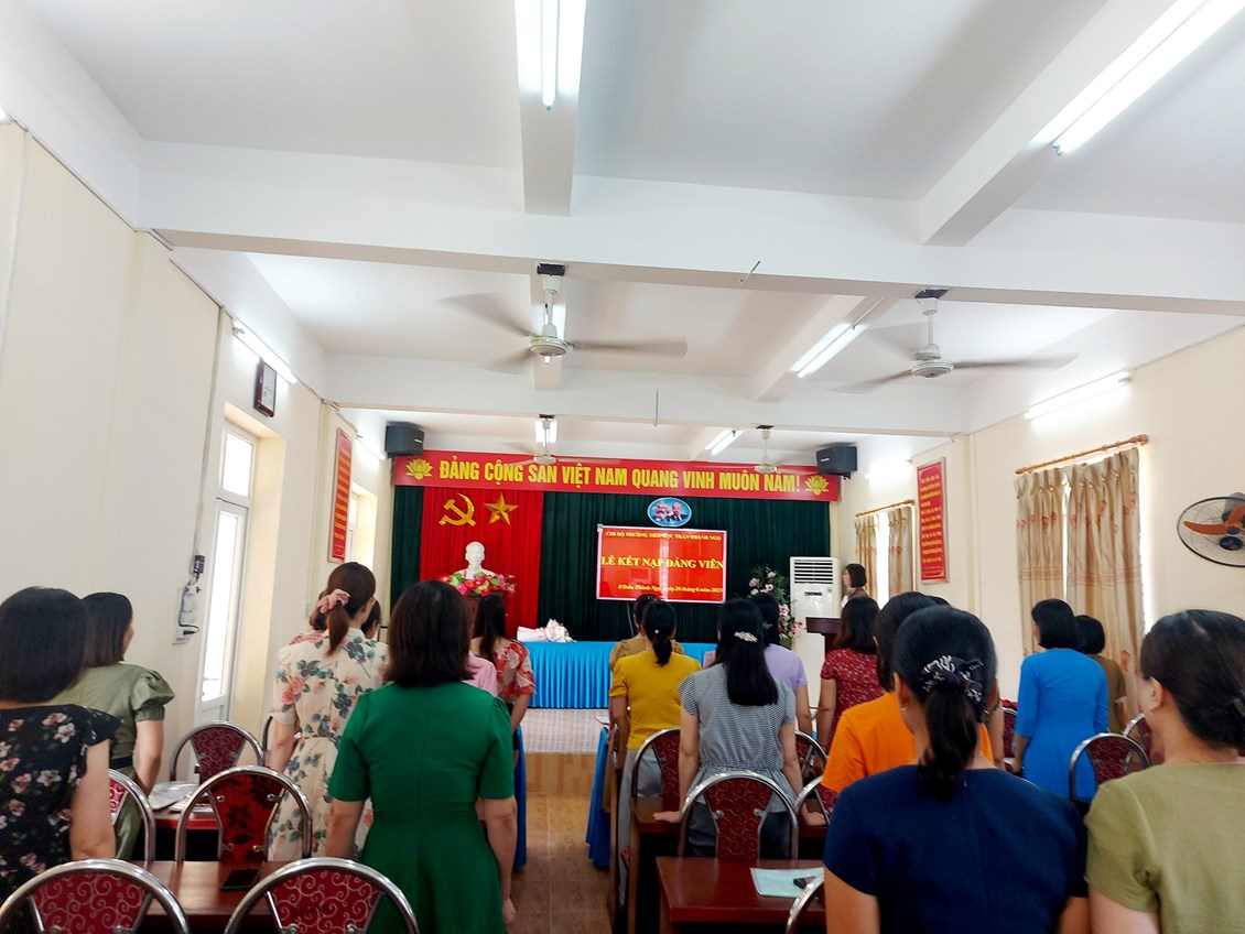 Phát biểu tại buổi lễ, đồng chí Nguyễn Thị Hồng Nhung- Phó BT Đảng uỷ- Chủ tịch HĐND phường đề nghị đồng chí Vũ Thị Tuyết tiếp tục phấn đấu, tu dưỡng về phẩm chất chính trị, chuyên môn nghiệp vụ, tích cực tham gia hoạt động của nhà trường cũng như tại địa phương để sau 12 tháng sẽ được công nhận là đảng viên chính thức. Đồng chí cũng đề nghị Chi bộ nhà trường trong thời gian tới tiếp tục quan tâm và làm tốt công tác phát triển Đảng.