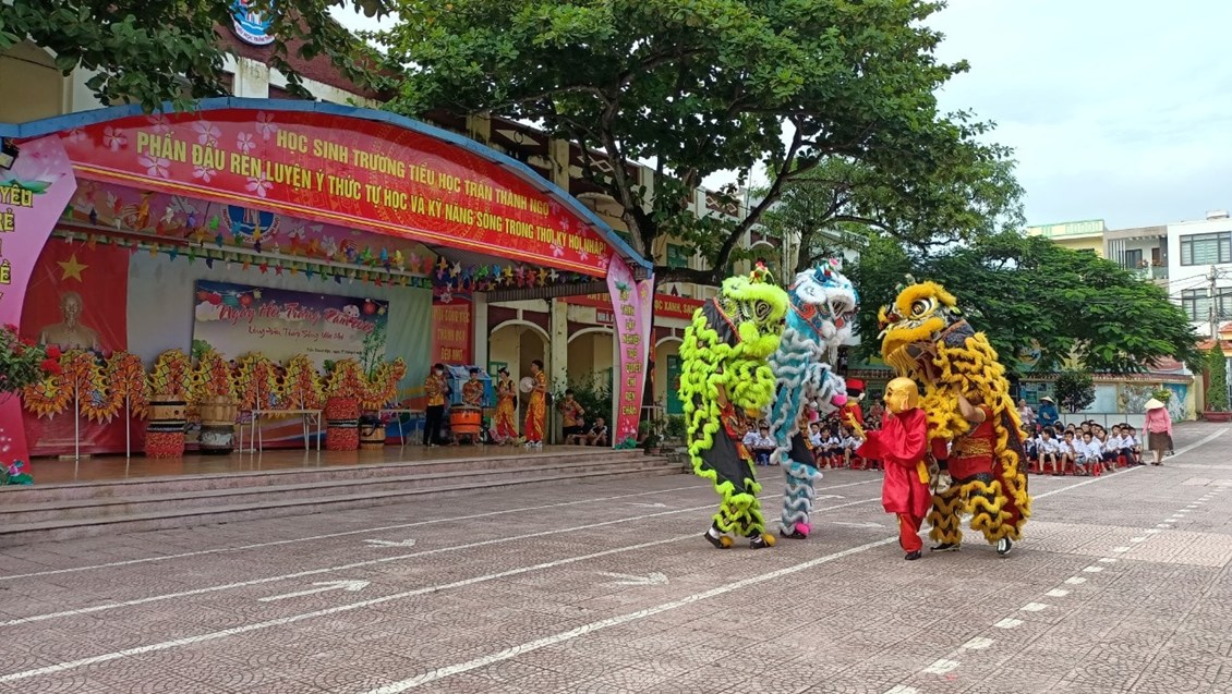 Màn múa lân đậm chất truyền thống, với đầu sư tử sặc sỡ, bộ lông nổi bật đã thu hút được nhiều sự chú ý của các em học sinh, tiếng reo vang vui nhộn khắp sân trường. Trong lớp học, các em vô cùng hào hứng với sự chung tay của giáo viên và quý bậc phụ huynh. Các em được nghe thư của Chủ tịch nước, được nghe sự tích chú Cuội, chị Hằng, được chơi các trò chơi đố vui, được hưởng không khí ấm áp, vui tươi, phấn khởi của TẾT ĐOÀN VIÊN. Đặc biệt các em còn tự tay làm ra nhiều những sản phẩm đẹp. Mỗi sản phẩm là mỗi thế giới riêng biệt với những ý tưởng độc đáo và mới lạ như: những chiếc đèn lồng, chiếc mặt lạ, nặn bánh nướng, bánh dẻo… Các em còn được tìm hiểu về ý nghĩa của ngày Tết Trung thu; được tham gia các trò chơi cùng chú Cuội và chị Hằng; được chú Hề tặng những phần quà ý nghĩa bằng bóng bay do bàn tay khéo léo, chuyên nghiệp, nghệ thuật của chú tạo nên.