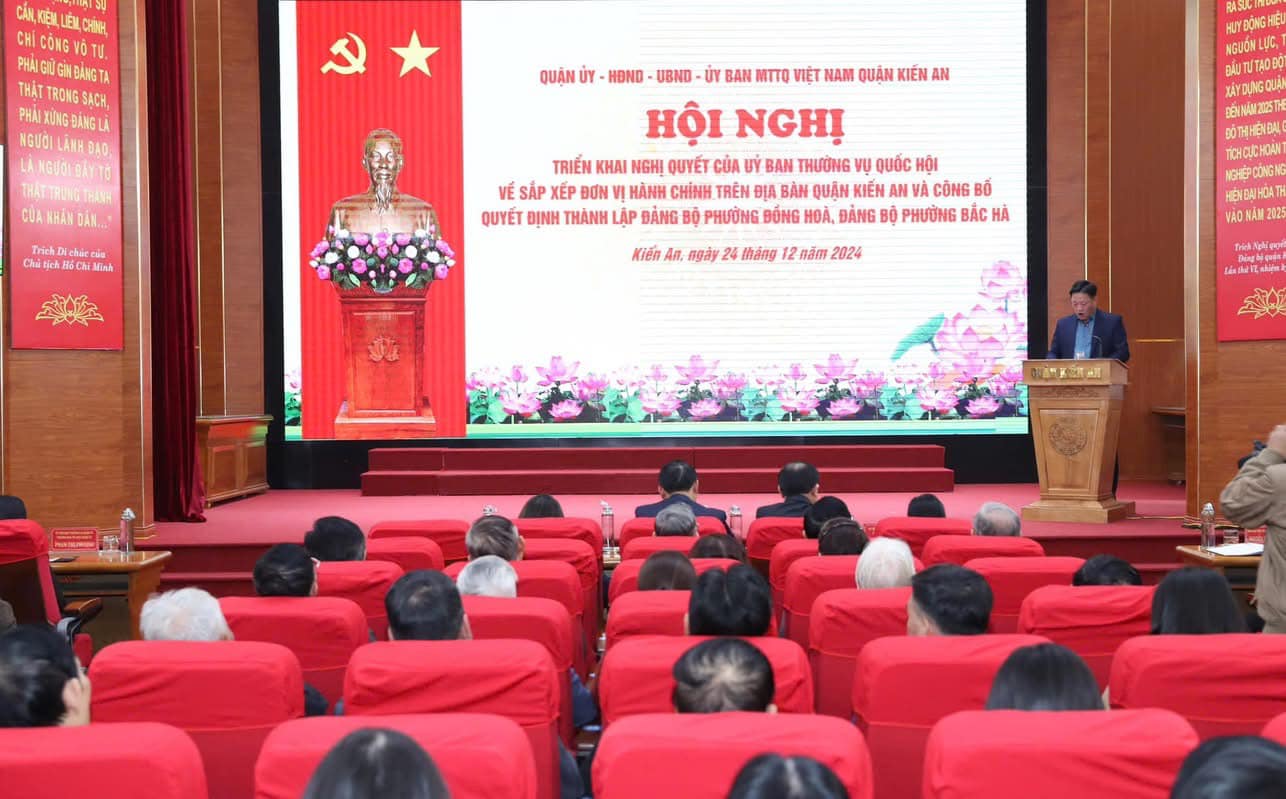 Chiều 24-12, Quận ủy, UBND quận Kiến An tổ chức hội nghị triển khai thực hiện Nghị quyết của Uỷ ban Thường vụ Quốc hội về sắp xếp đơn vị hành chính phường trên địa bàn Quận Kiến An giai đoạn 2023 - 2025.