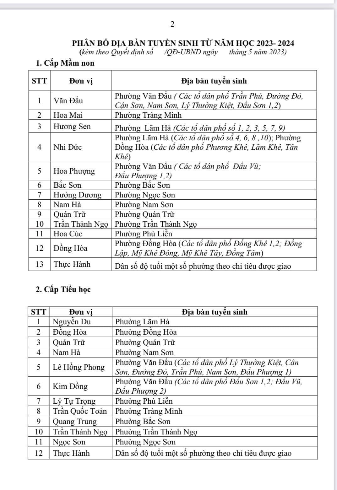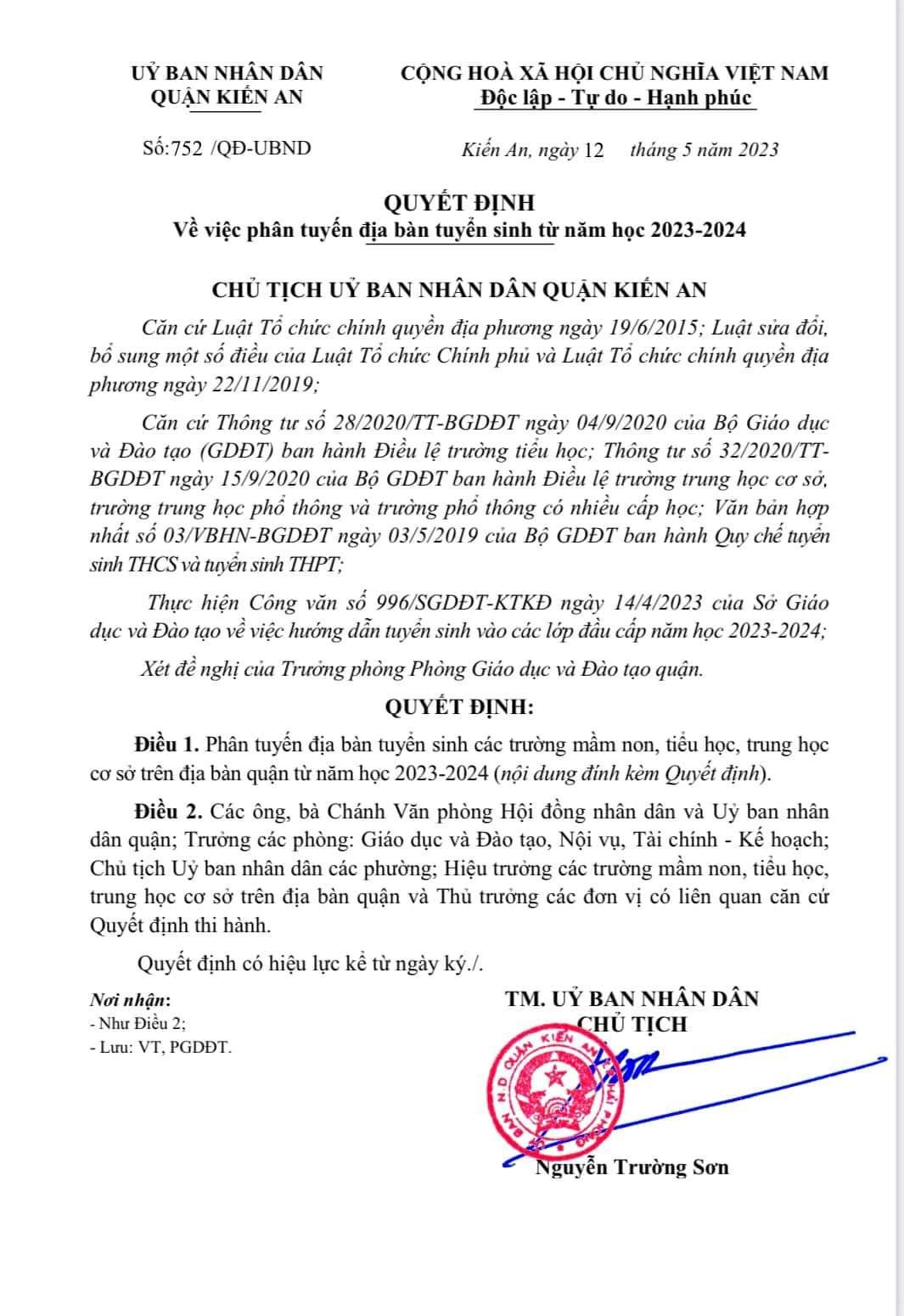 📢📢 Kính gửi các bậc phụ huynh học sinh Quyết định phân tuyến tuyển sinh các trường THCS, Tiểu học, Mầm non trên địa bàn quận Kiến An năm học 2023-2024