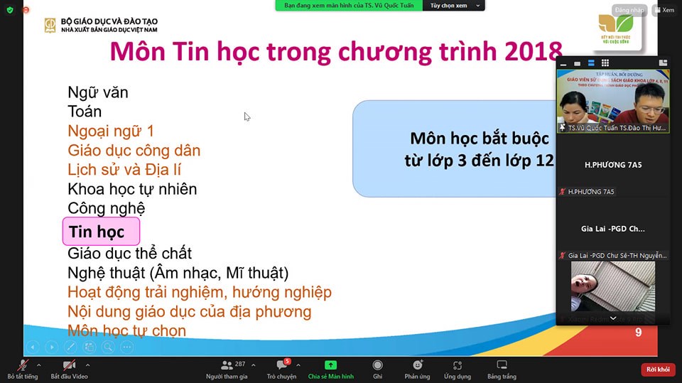 LSĐL, GDTC, Mỹ thuật, Âm nhạc, Đạo đức, HĐTN, Tin học tham dự tập huấn sách giáo khoa lớp 4 bộ Kết nối tri thức với cuộc sống theo hình thức trực tuyến, thông qua nền tảng Zoom.