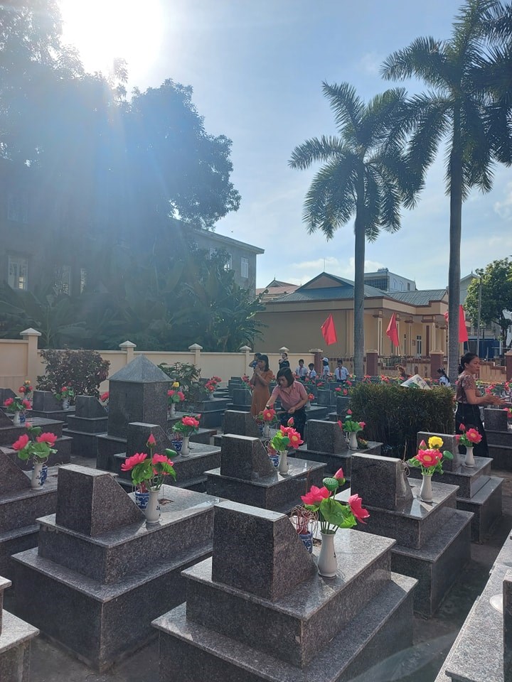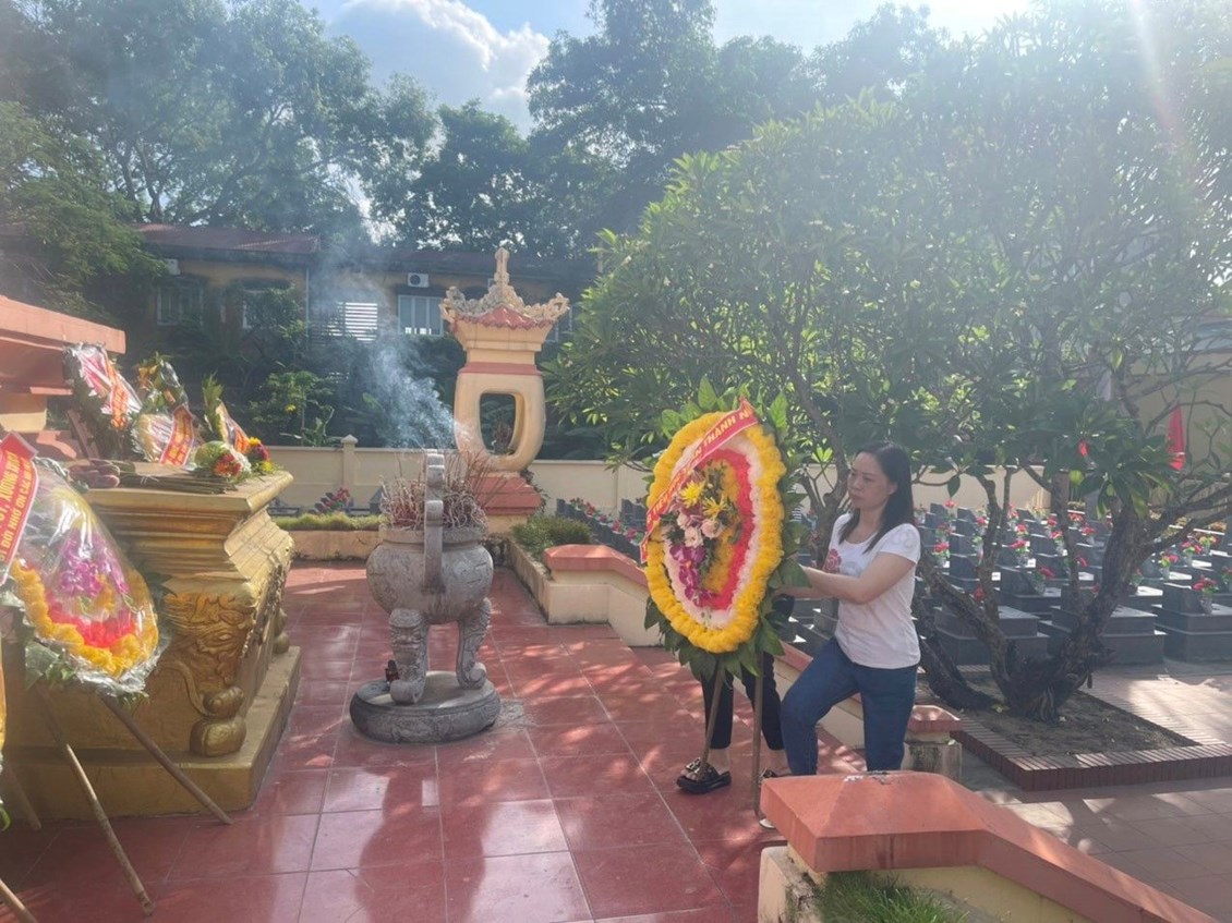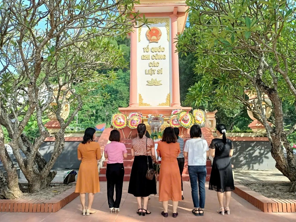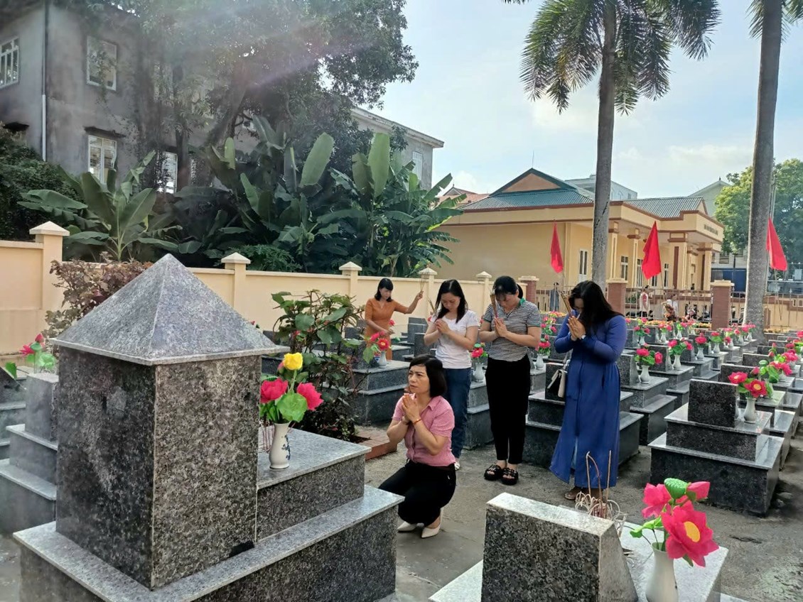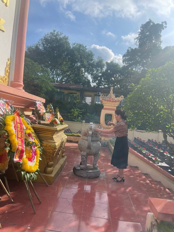 Sau khi thực hiện lễ dâng hương và dâng hoa tưởng niệm, các thầy cô giáo đã đi thắp hương tại các Bia liệt sỹ và mộ cụ Trần Thành Ngọ bày tỏ lòng thành kính trước anh linh của các anh hùng liệt sĩ.