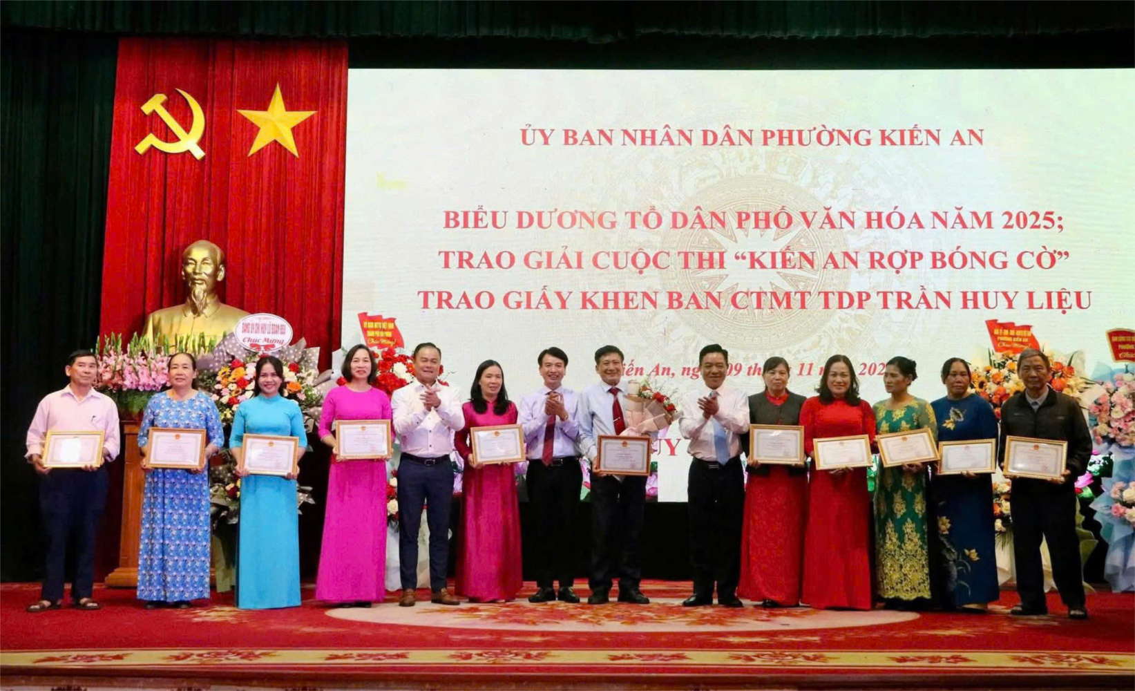 Với ý tưởng sáng tạo, bố cục hài hòa và tinh thần hướng về Đảng, về quê hương Kiến An, nhà trường đã xuất sắc giành Giải Ba phần thi Trang trí tạo không gian “Kiến An rợp bóng cờ”.