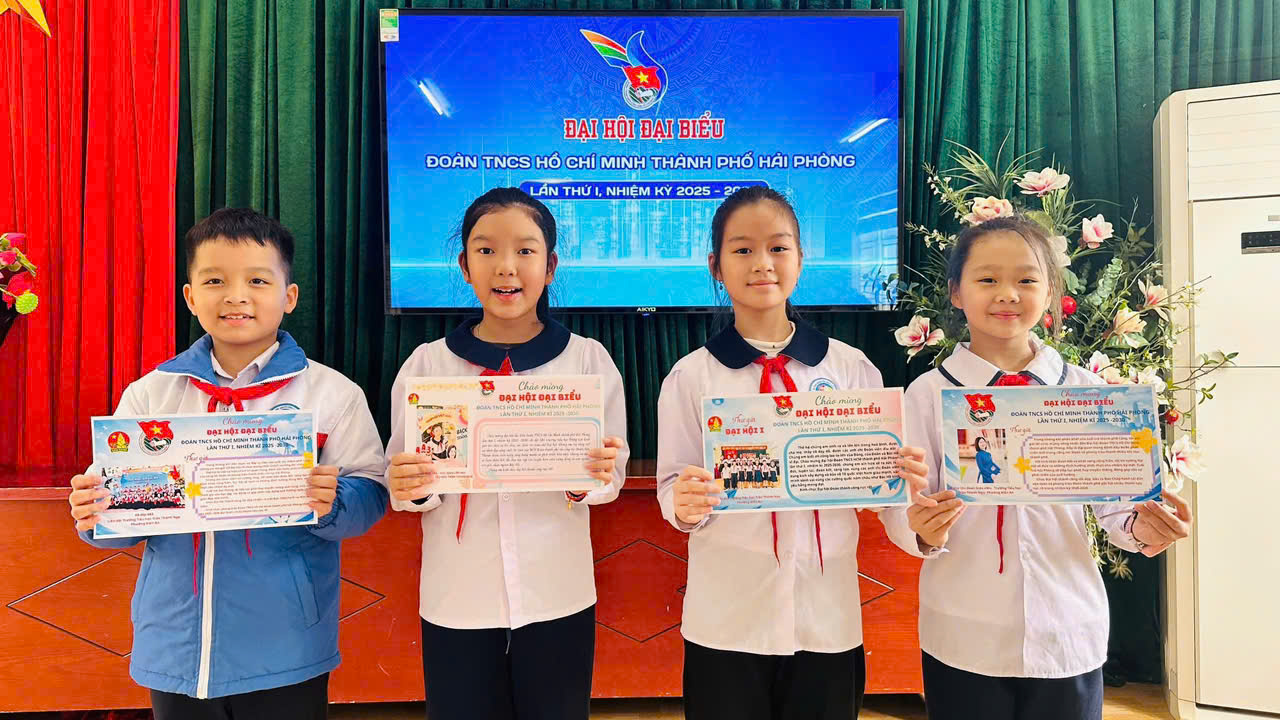 Hòa chung không khí thi đua sôi nổi của tuổi trẻ thành phố chào mừng Đại hội đại biểu Đoàn TNCS Hồ Chí Minh thành phố Hải Phòng lần thứ I, nhiệm kỳ 2025 - 2030, thiếu nhi và chi đoàn GV trường Tiểu học Trần Thành Ngọ, phường Kiến An chúc Đại hội đại biểu Đoàn TNCS Hồ Chí Minh thành phố Hải Phòng lần thứ I, nhiệm kỳ 2025 – 2030 thành công tốt đẹp