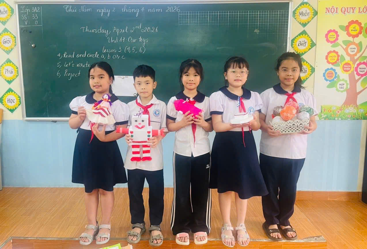 Giáo viên tổ chức cho học sinh luyện tập các từ vựng và mẫu câu về chủ đề “toys” thông qua các dạng bài tập như lựa chọn, điền từ kết hợp với các hoạt động đa dạng: hỏi – đáp, làm việc theo cặp/nhóm và trò chơi học tập mang tính tương tác. Qua đó, giáo viên giúp học sinh khắc sâu chủ đề, từ vựng và mẫu câu, đồng thời ghi nhớ và sử dụng đúng các cấu trúc câu đã học trong ngữ cảnh quen thuộc.