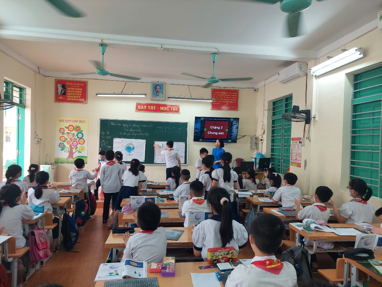 Thực hiện chỉ đạo chuyên môn của Ban Giám hiệu nhà trường trong việc đổi mới phương pháp dạy học. Vừa qua, tổ khối 3 đã xây dựng thành công tiết chuyên đề trường: “Dạy học sinh động thông qua các trò chơi học tập” do cô giáo Phạm Thị Ngọc cùng các em học sinh lớp 3A4 thực hiện. Qua việc tổ chức các trò chơi liên quan đến nội dung bài học trong môn TNXH 3, chuyên đề đã giúp phát huy tính tích cực, tạo hứng thú học tập cho học sinh. Qua đó, học sinh được tiếp thu kiến thức một cách nhẹ nhàng, tự nhiên. Ngoài ra, học sinh còn có thể phát hiện ra nhiều vấn đề mới khác so với nhiệm vụ ban đầu. Bằng việc vận dụng các kĩ năng, kĩ xảo để tham gia trò chơi, học sinh nhanh chóng phát triển những kiến thức nền tảng thành những kiến thức mới thú vị hơn. Việc sử dụng trò chơi để thay đổi hình thức học tập làm cho không khí lớp học thoải mái và sôi nổi hơn. Từ đó tạo cho học sinh sự tự giác, tích cực hơn trong việc tiếp nhận kiến thức.