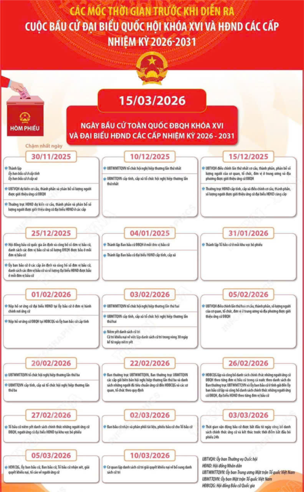 Cuộc bầu cử đại biểu Quốc hội khóa XVI và đại biểu Hội đồng nhân dân các cấp nhiệm kỳ 2026-2031 là sự kiện chính trị trọng đại của đất nước diễn ra ngay sau Đại hội lần thứ XIV của Đảng.