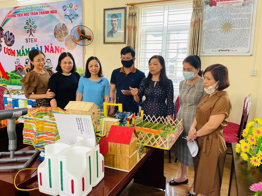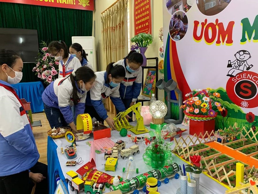 BGH đi chấm các gian trưng bày stem của các khối lớp.