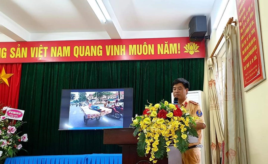 Trong buổi tuyên truyền trung tá Nguyễn Đăng Tuấn đã chia sẻ rất nhiều thông tin bổ ích, gắn với thực tế về luật giao thông đường bộ: biển báo, đèn tín hiệu, biển chỉ dẫn..giúp các em HS hiểu hơn về Luật giao thông đường bộ, có ý thức chấp hành nghiêm chỉnh khi tham gia giao thông.