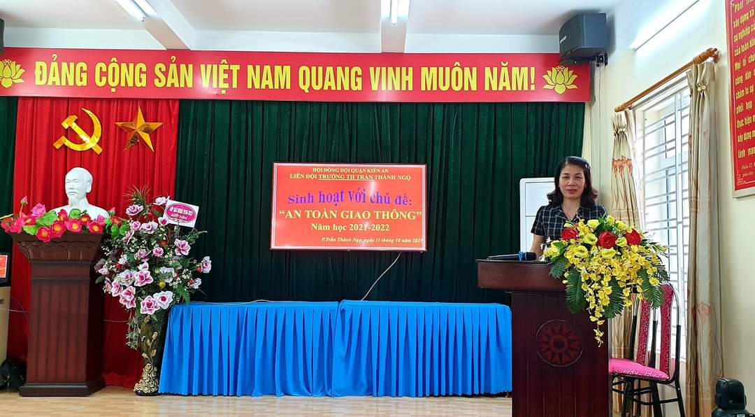 Sáng ngày 11/10/2021, thực hiện cv số 2138/ BATGT-QLĐT, chương trình công tác đội và phong trào thiếu nhi năm học 2021-2022 Liên đội trường TH Trần Thành Ngọ, quận Kiến An tổ chức sinh hoạt tuyên truyền theo chủ điểm "An toàn giao thông". Về dự với buổi tuyên truyền của Liên đội có Trung tá Nguyễn Đăng Tuấn - Đội trưởng đội CSGT quận Kiến An, Đài phát thanh và truyền hình Hải Phòng về dự, đưa tin, BGH nhà trường, HS đại diện cho các khối lớp dự tại điểm cầu trung tâm(hội trường) cùng các thầy cô giáo và hơn 1000 học sinh dự trực tuyến tại các điểm cầu của lớp học.